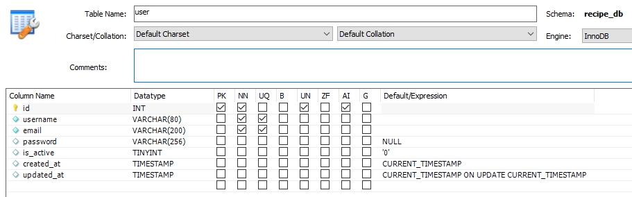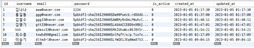 0. user 테이블 구조