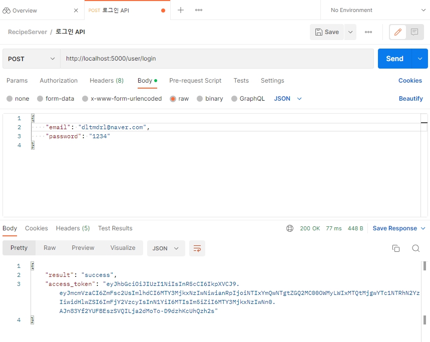 flask_jwt_extended 라이브러리를 사용해 access token을 리턴하게 만든다.