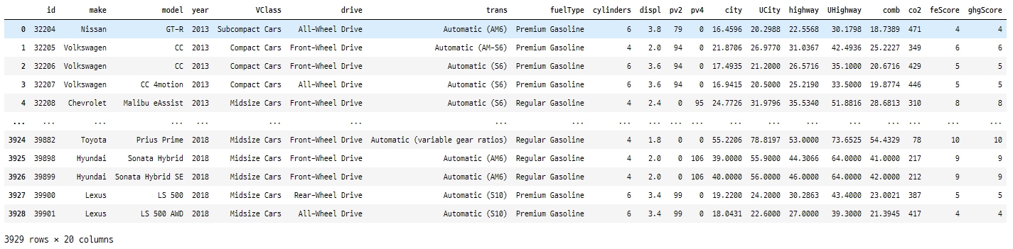 배기량이 커지면 연비가 낮아지는, 강한 음의 상관관계가 있다고 볼 수 있다.